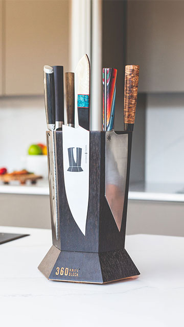 The 360 Knife Block™ classic is the original, patented design that revolutionized the magnetic knife block. Timeless design handmade to last a lifetime.